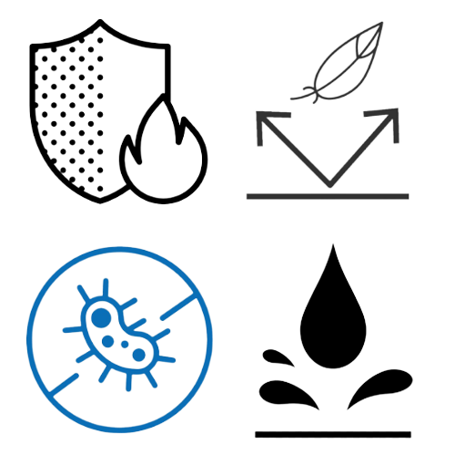 Beside regular finishes, SNA Export also manufactures fabric in the following specialized finishes: